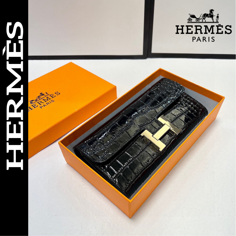 【エルメス】新作長財布 シャイニークロコ ノワール/金具