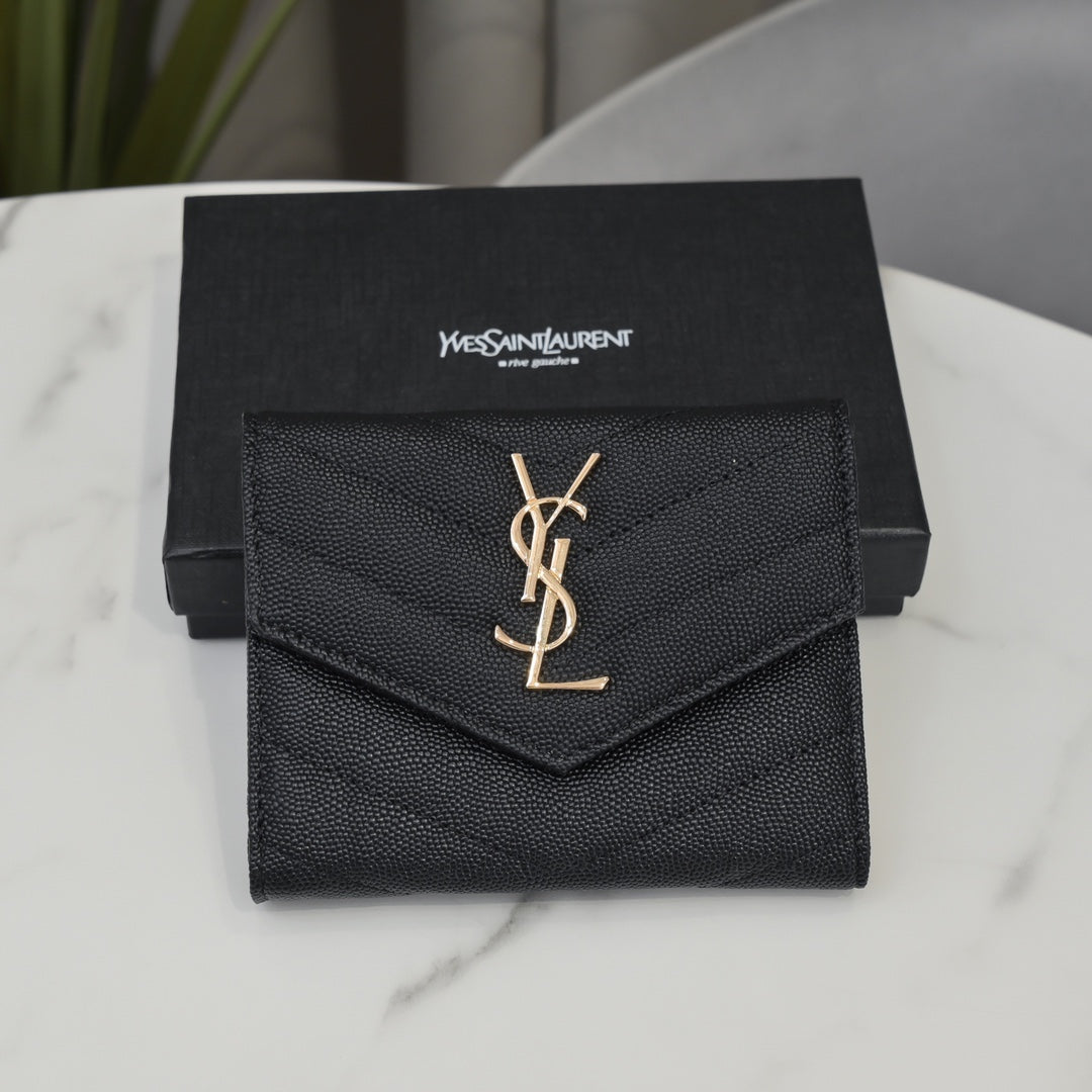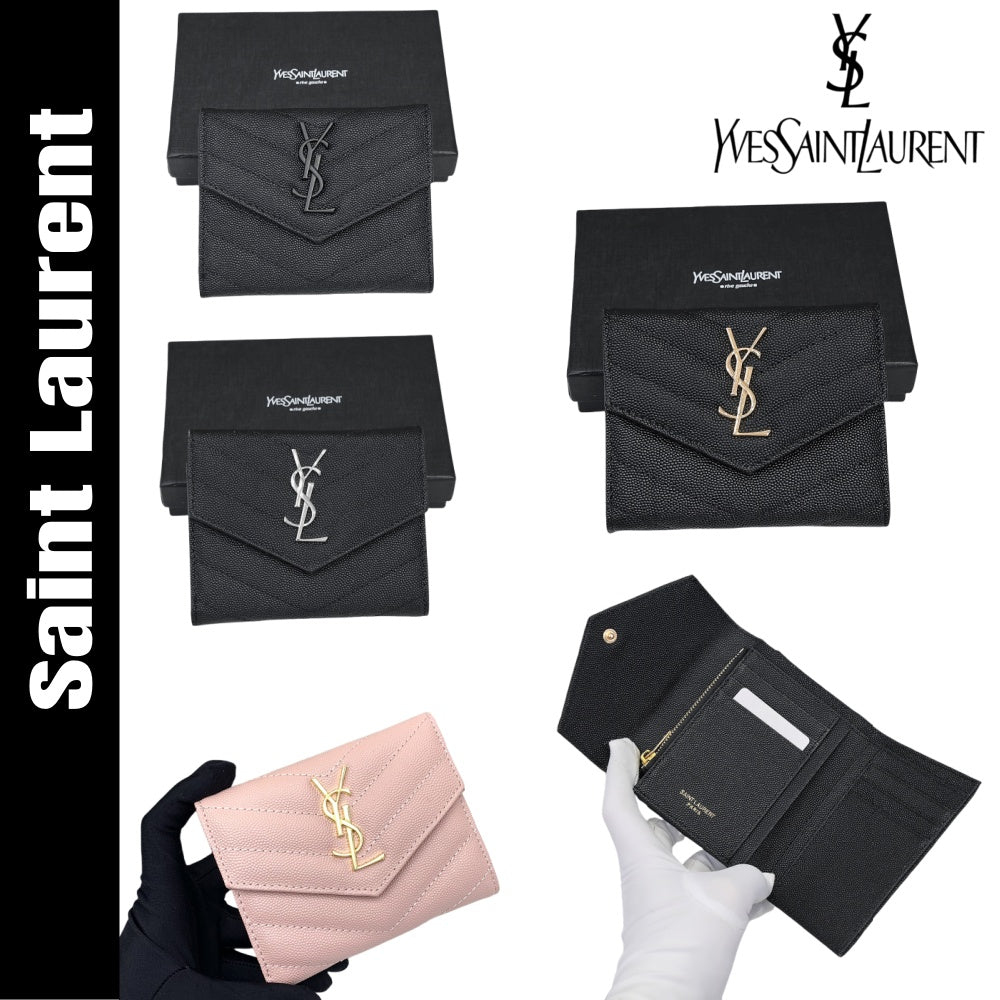 YSL【サンローラン】大人気ロゴ 小銭入れ付き 三つ折り財布4色