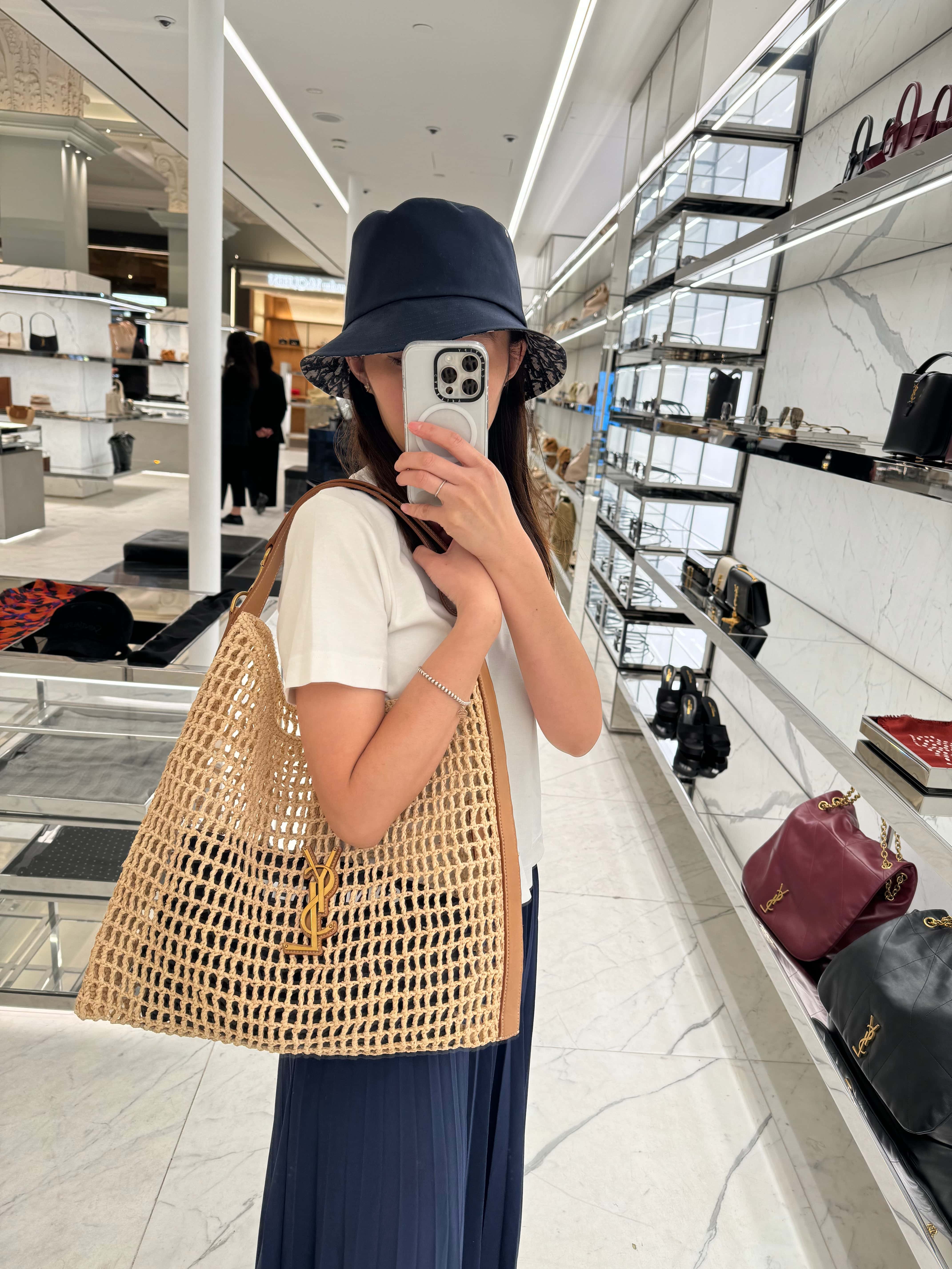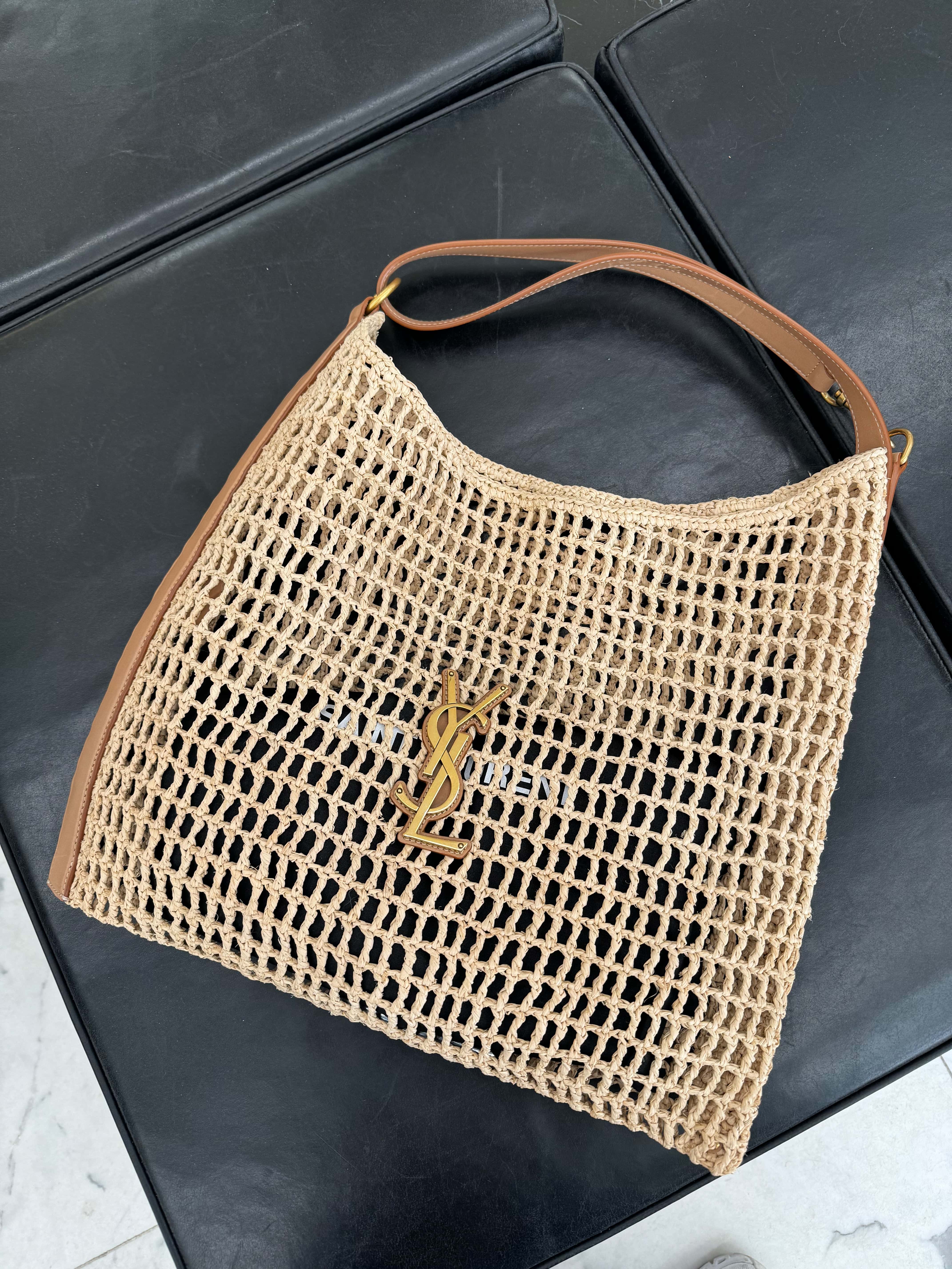 YSL【サンローラン】パリ カサンドラ ラフィア×レザー ショルダーバッグ ベージュ
