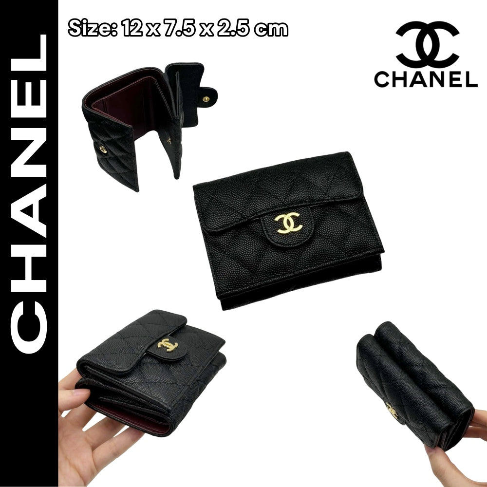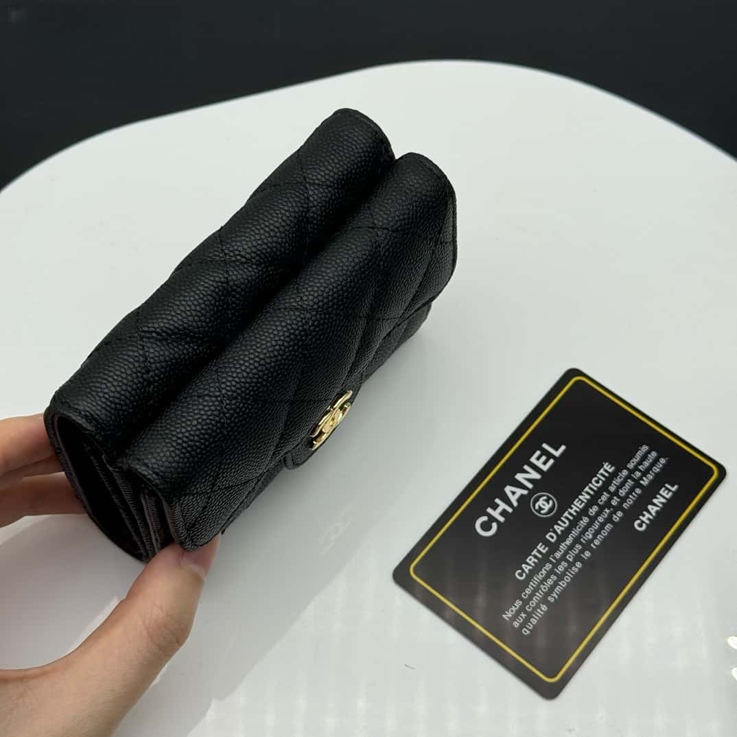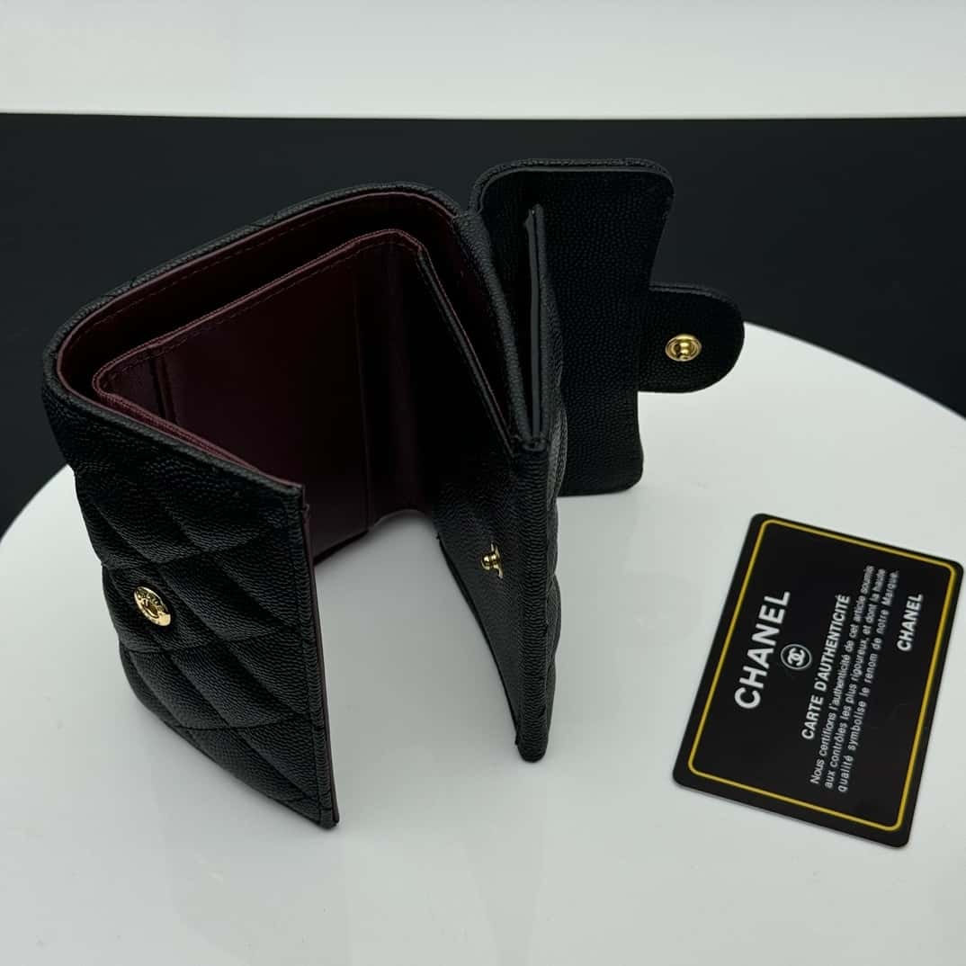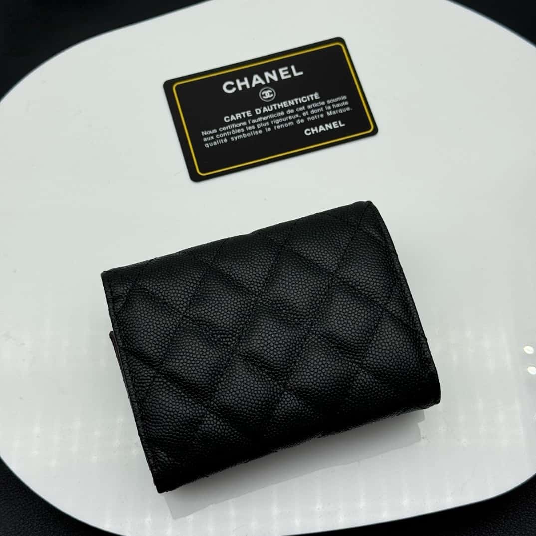 【シャネル】定番CFライン キャビアスキン三つ折財布 高級感漂う春夏新作