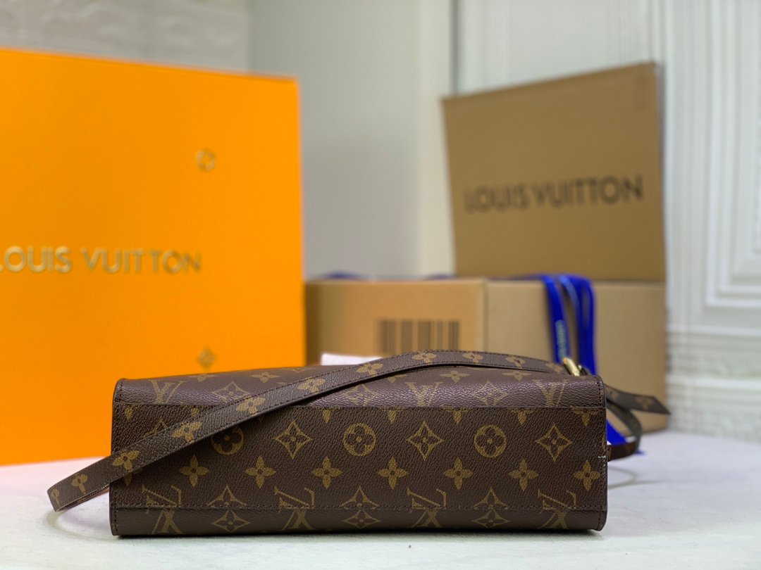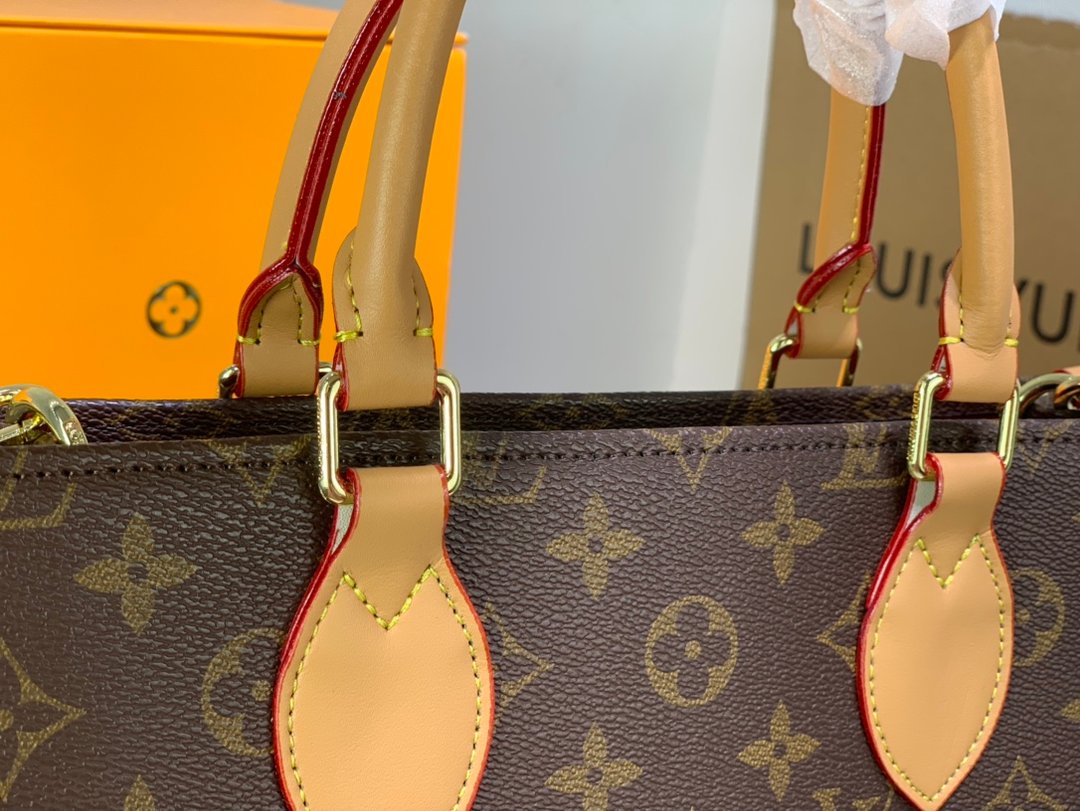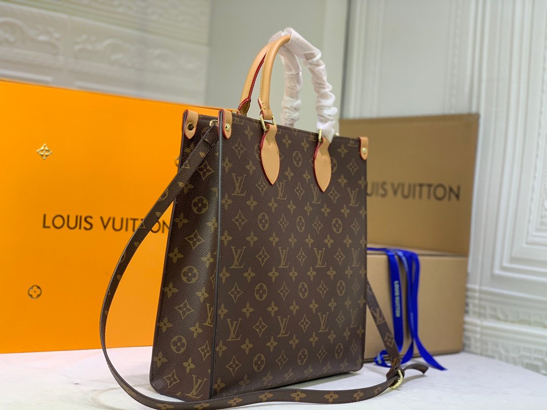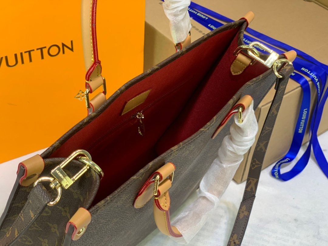 名前に相応しく、ショッピングや休日、仕事にも最適な「オンザゴー」。充分な収納力を備えたバッグにオーバーサイズのモノグラム?パターンをあしらい、ミニ?モノグラムのトリミングでコントラストを描きました。装いにモダンなインパクトを添えるステートメントアイテムです。関節式トロンハンドルと2本のショルダーストラップで、1日中快適に持ち運べます。