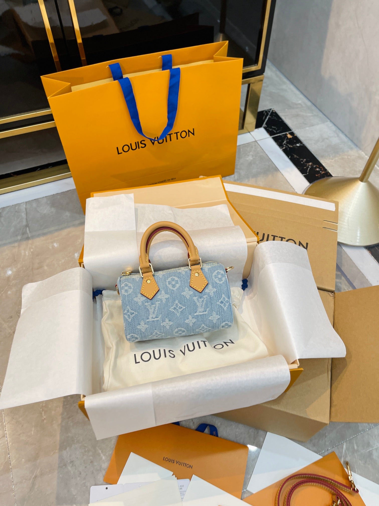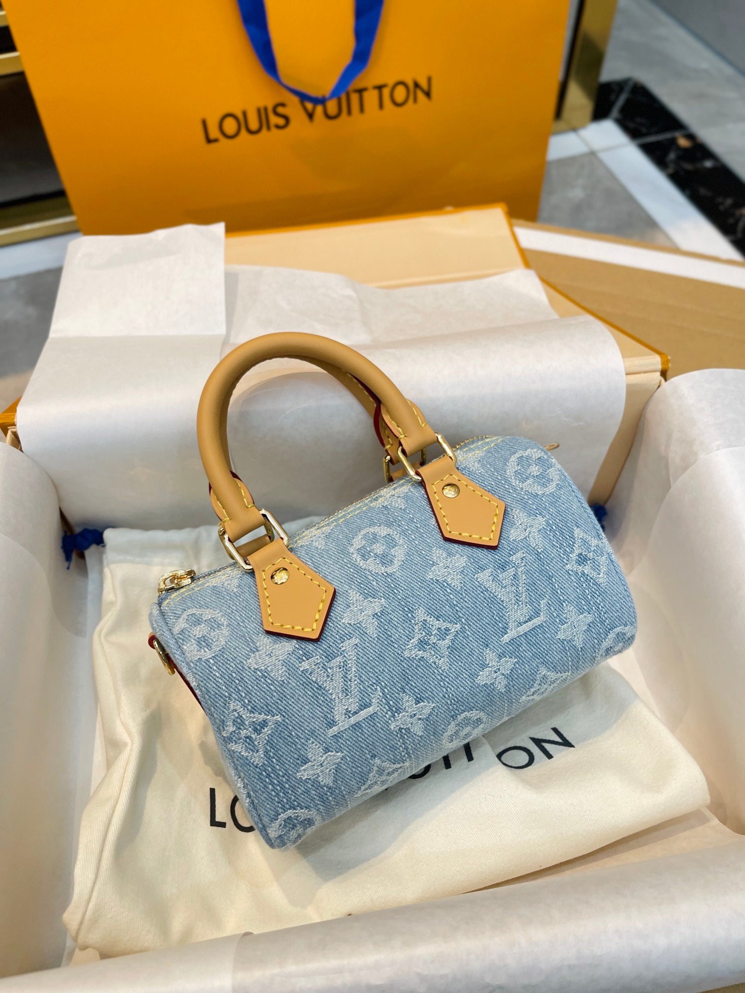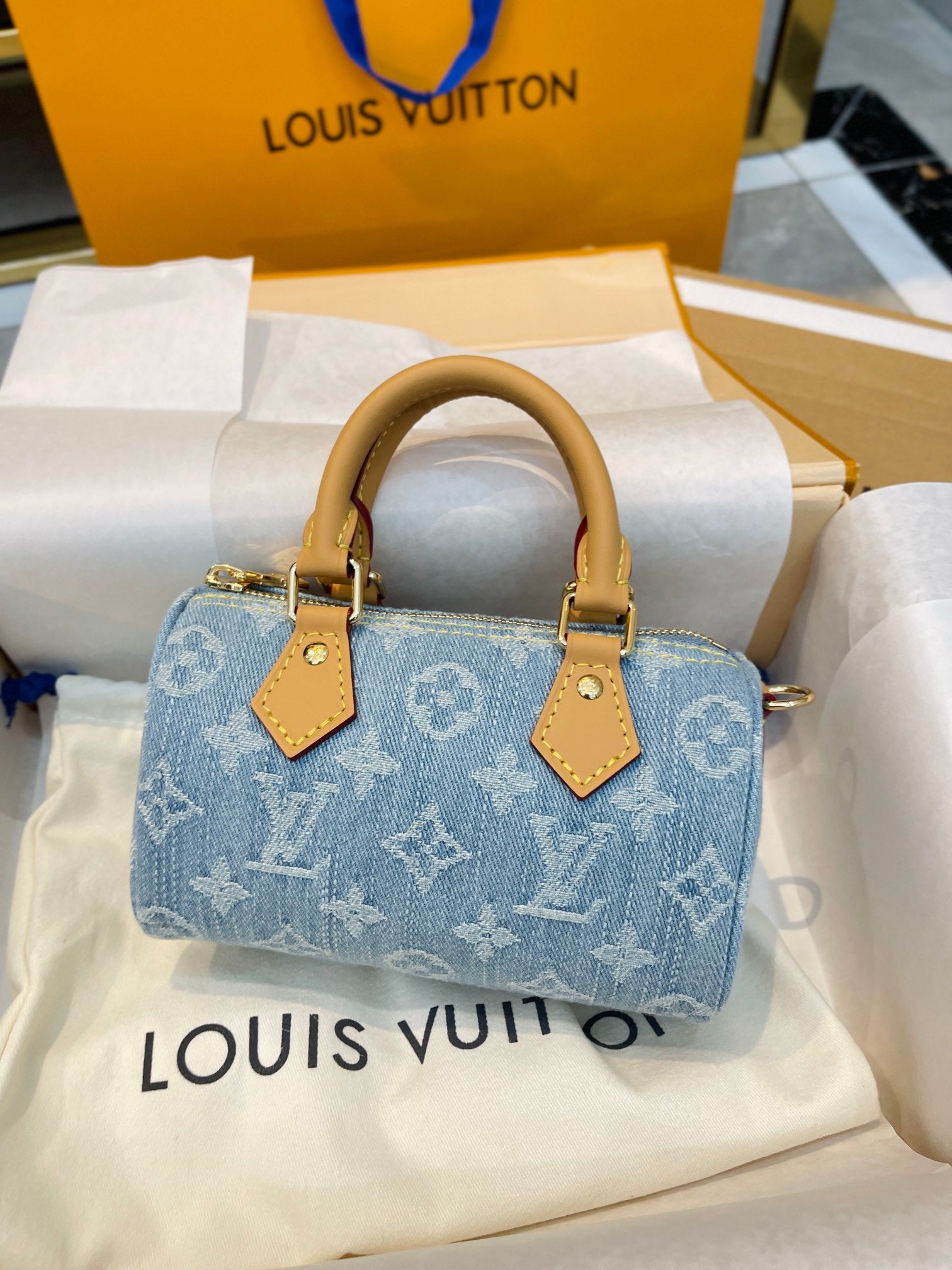 【ルイヴィトン】爽やかなデニム♪ ナノスピーディー♪ ショルダーバッグ 16