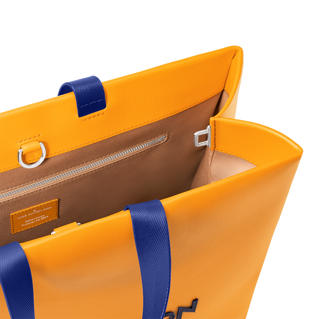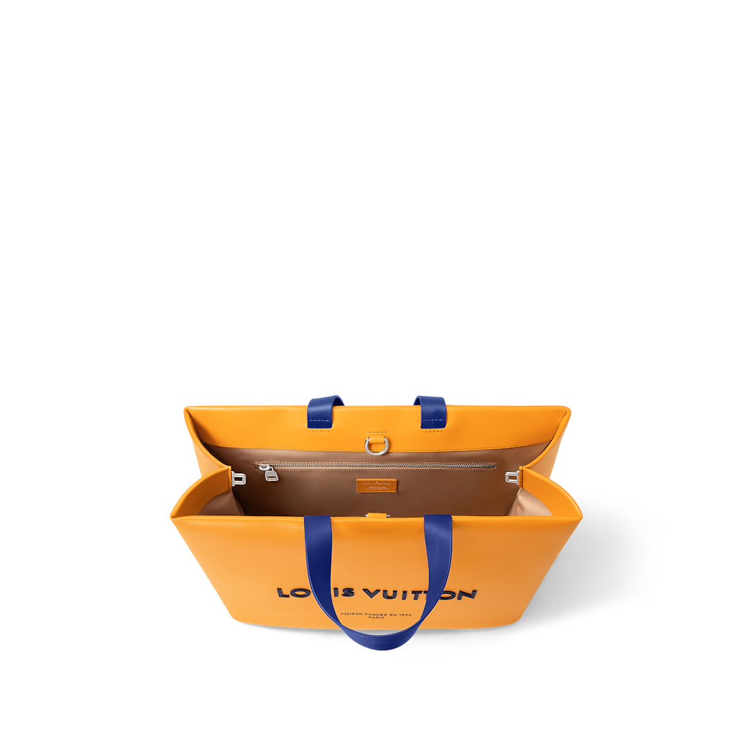 ルイ・ヴィトンのショッピングバッグからインスピレーションを得たこのミディアムショッパーバッグは、柔らかいカーフスキンにルイ・ヴィトンとメゾン・フォンデ・アン1854の文字、トップハンドル、取り外し可能なショルダーストラップが付いています。