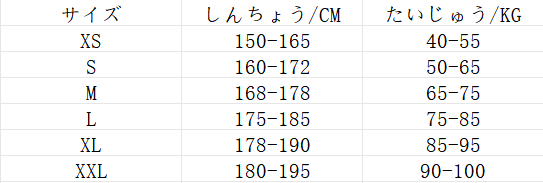 サイズ着丈身幅肩幅袖丈身長重量